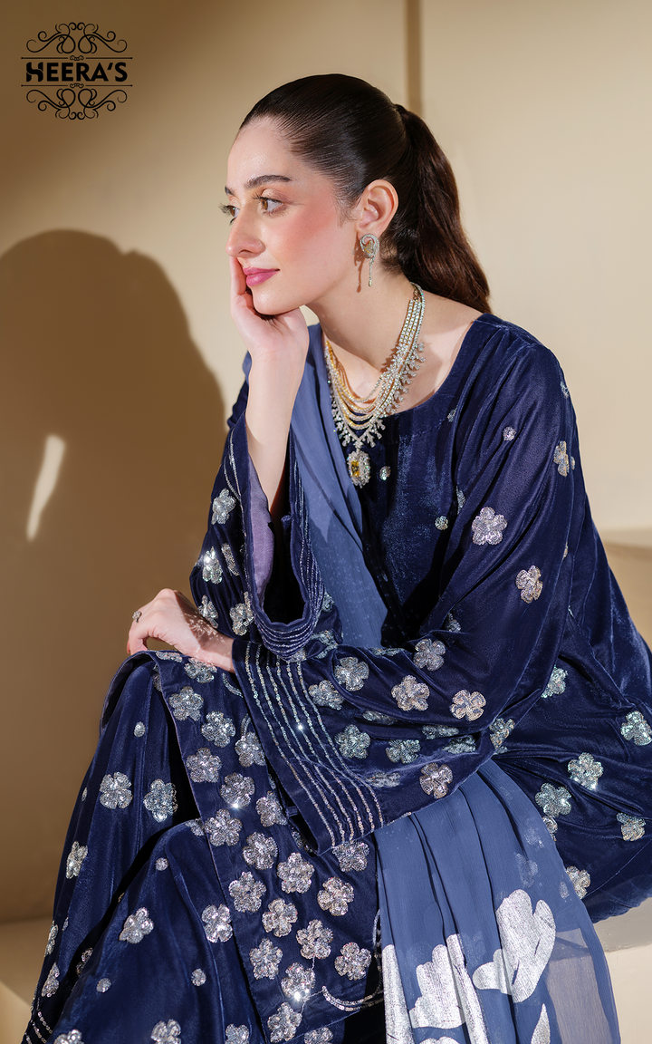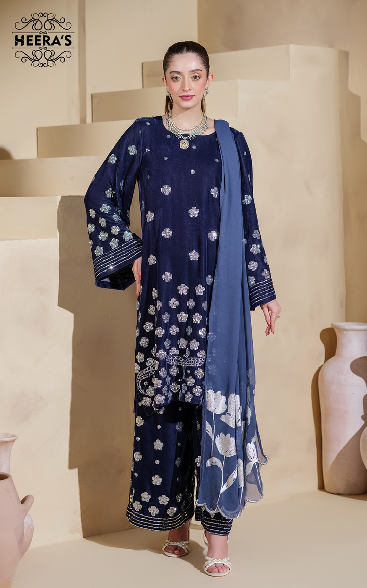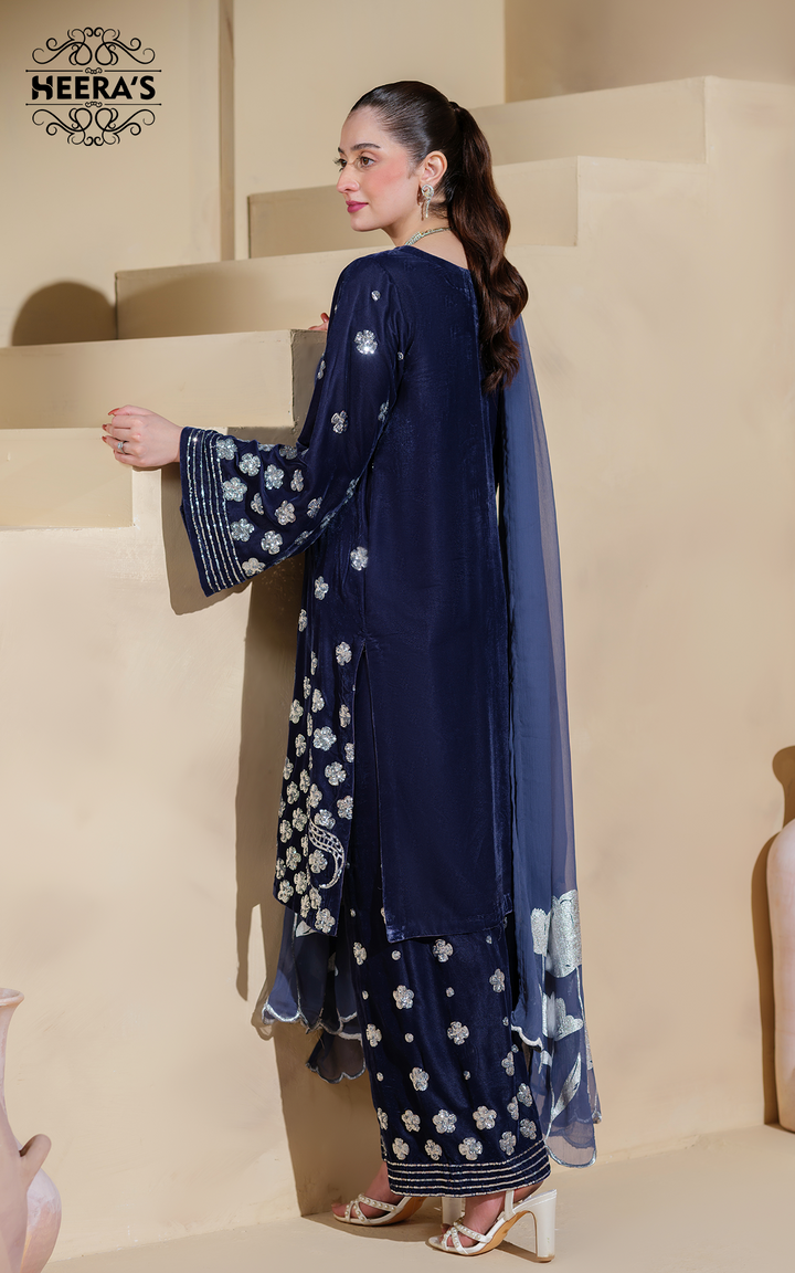 This shirt is made from luxurious Velvet 9000 Micro fabric. It has beautiful sequence embroidery on the full shirt, including on the arms, sleeves, and Daman.