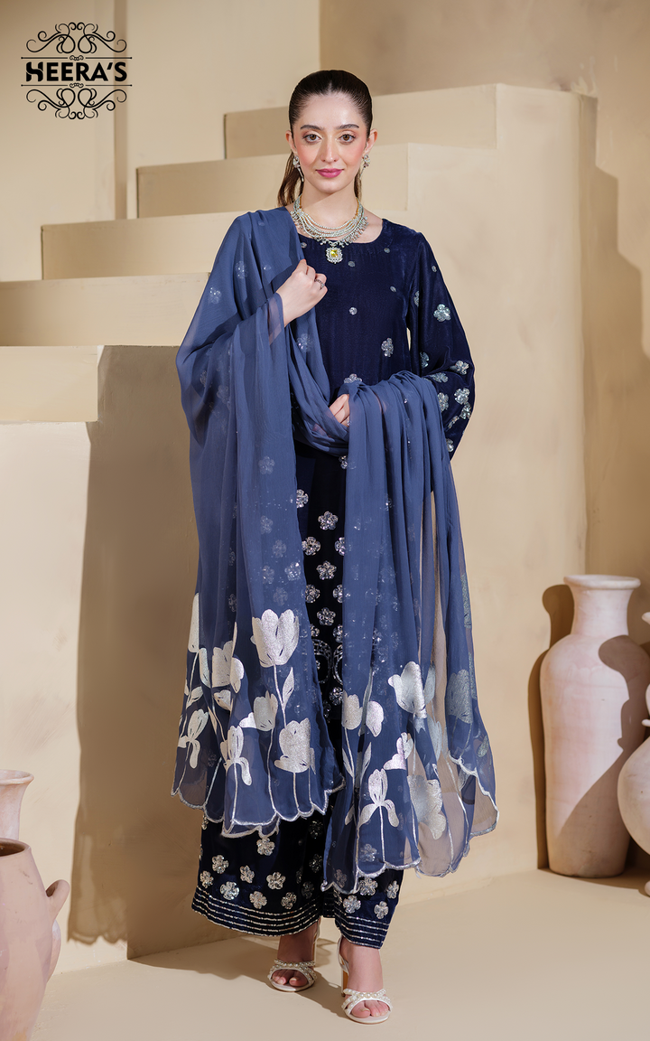 The set comes with a beautiful Chiffon dupatta that has a cutwork style design and